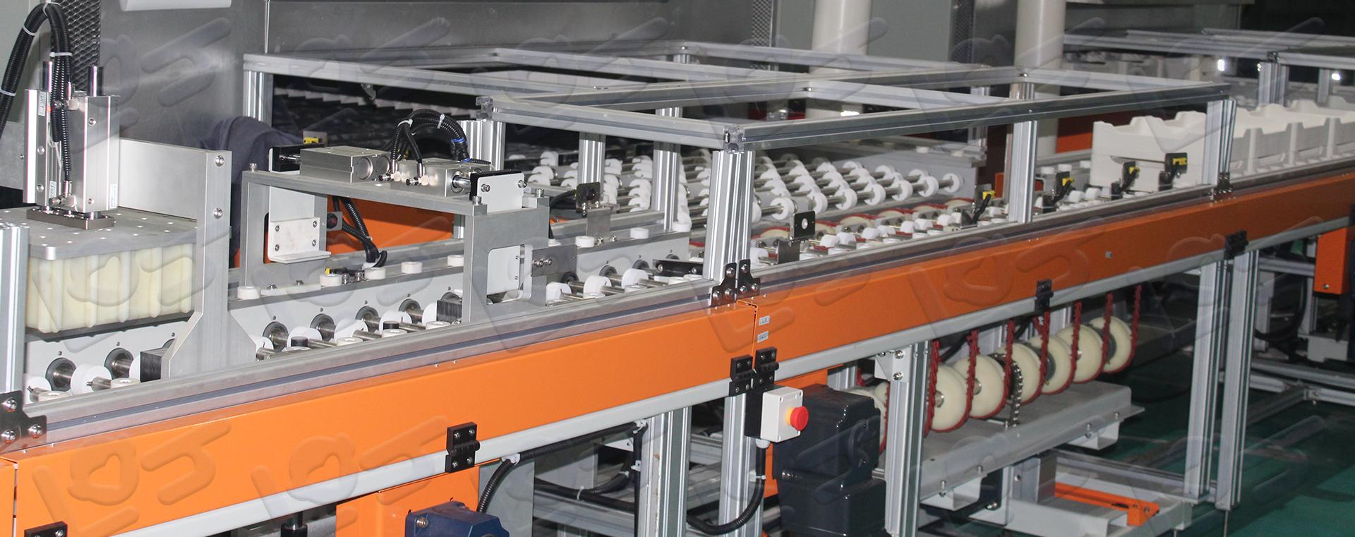 鋰電外軌線采用全新的無人化智能生產(chǎn)標(biāo)準(zhǔn)設(shè)計,整條生產(chǎn)線無需人工干預(yù),匣缽傳輸高效穩(wěn)定,各工位動作流暢平穩(wěn),整體密封性能高。